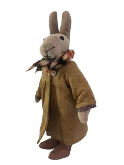 Filled with natural pine sawdust, this bunny has a comforting weight and an authentic, old-world feel. Measuring approximately 11.5 inches tall and weighing 6.4 oz, it features movable arms, legs, and head, allowing it to be gently posed in either a standing or sitting position.